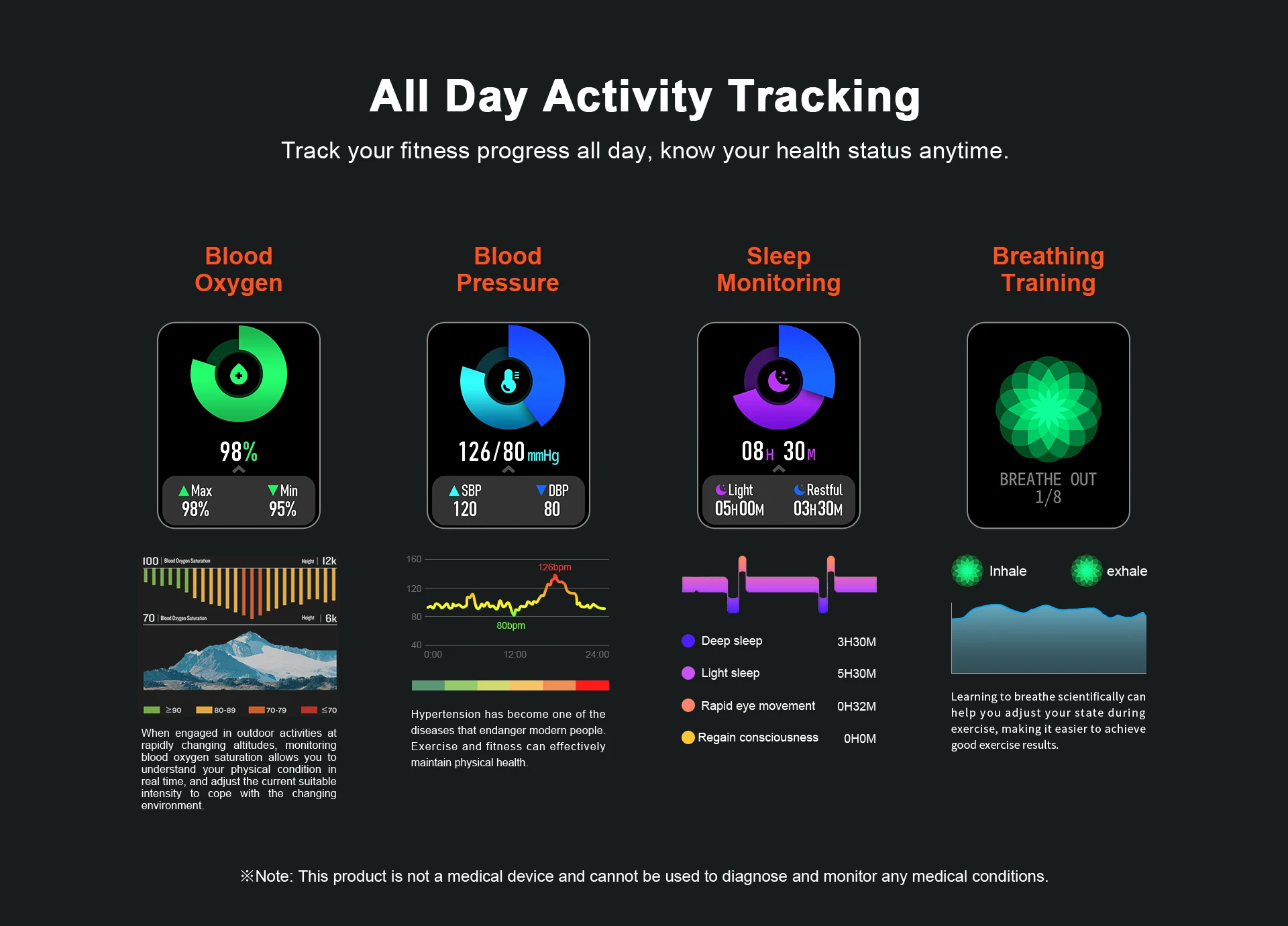monitoring, blood oxygen monitoring. Bring more convenience to your life.