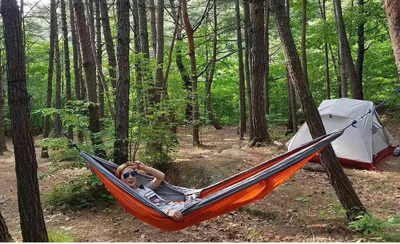 Crafted from high-strength, breathable nylon parachute fabric, this hammock is both lightweight and durable. It packs down into a compact size, making it easy to carry in your backpack or luggage. Perfect for minimalist travelers and campers.