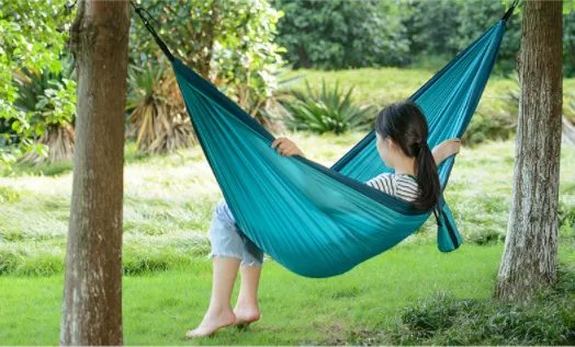 Crafted from high-strength, breathable nylon parachute fabric, this hammock is both lightweight and durable. It packs down into a compact size, making it easy to carry in your backpack or luggage. Perfect for minimalist travelers and campers.