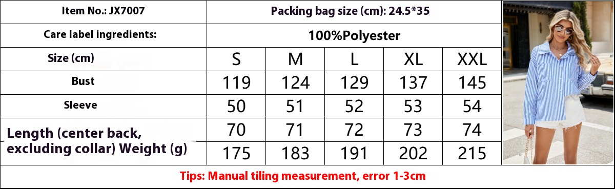 The Oversize BF Style Long Sleeve Loose Striped Shirt is the epitome of casual-chic fashion. Designed with comfort and style in mind, this loose-fitting shirt offers a relaxed silhouette that's perfect for easygoing days or laid-back weekends. The timeless striped pattern adds a touch of sophistication, while the oversized fit ensures ultimate comfort and freedom of movement. Whether you're running errands, hanging out with friends, or lounging at home, this shirt will keep you stylish without compromising on ease.