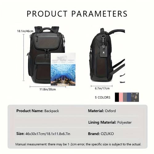 The OZUKO Men’s Business Backpack is the ideal choice for anyone who needs a reliable, professional, and stylish bag for daily commuting, work, school, or travel. With its shock-absorbing laptop compartment, ample organizational space, and durable construction, this backpack offers everything you need to stay organized and keep your devices safe. The sleek, modern design and comfortable shoulder straps make it easy to wear and carry throughout your busy day.