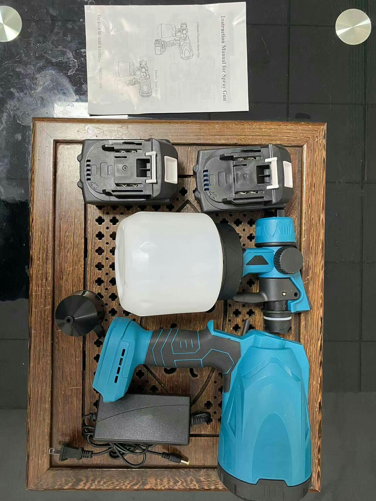 The spray gun should be cleaned immediately after use to prevent the paint from drying out at the nozzle and clogging the sprayer. Please fill the container with clean water and spray for 30-60 seconds to remove the paint on the spool, then clean it!