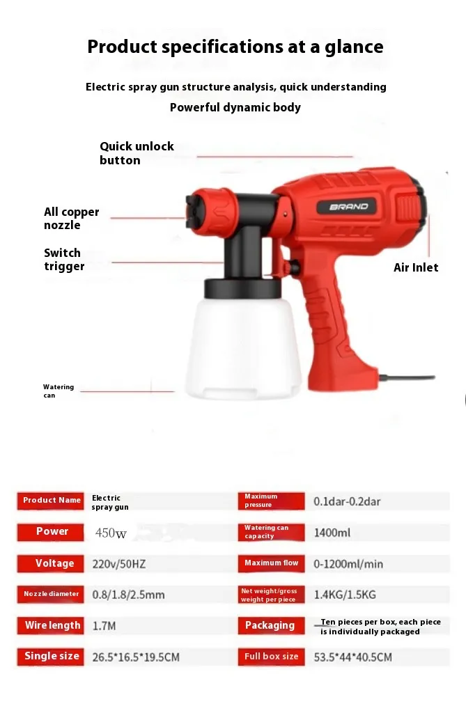 Make your painting projects easier and more efficient with the Paint Spraying Gun Machine. Its powerful performance, adjustable settings, and ergonomic design ensure that you can achieve a flawless finish every time, saving you time and effort on any project.