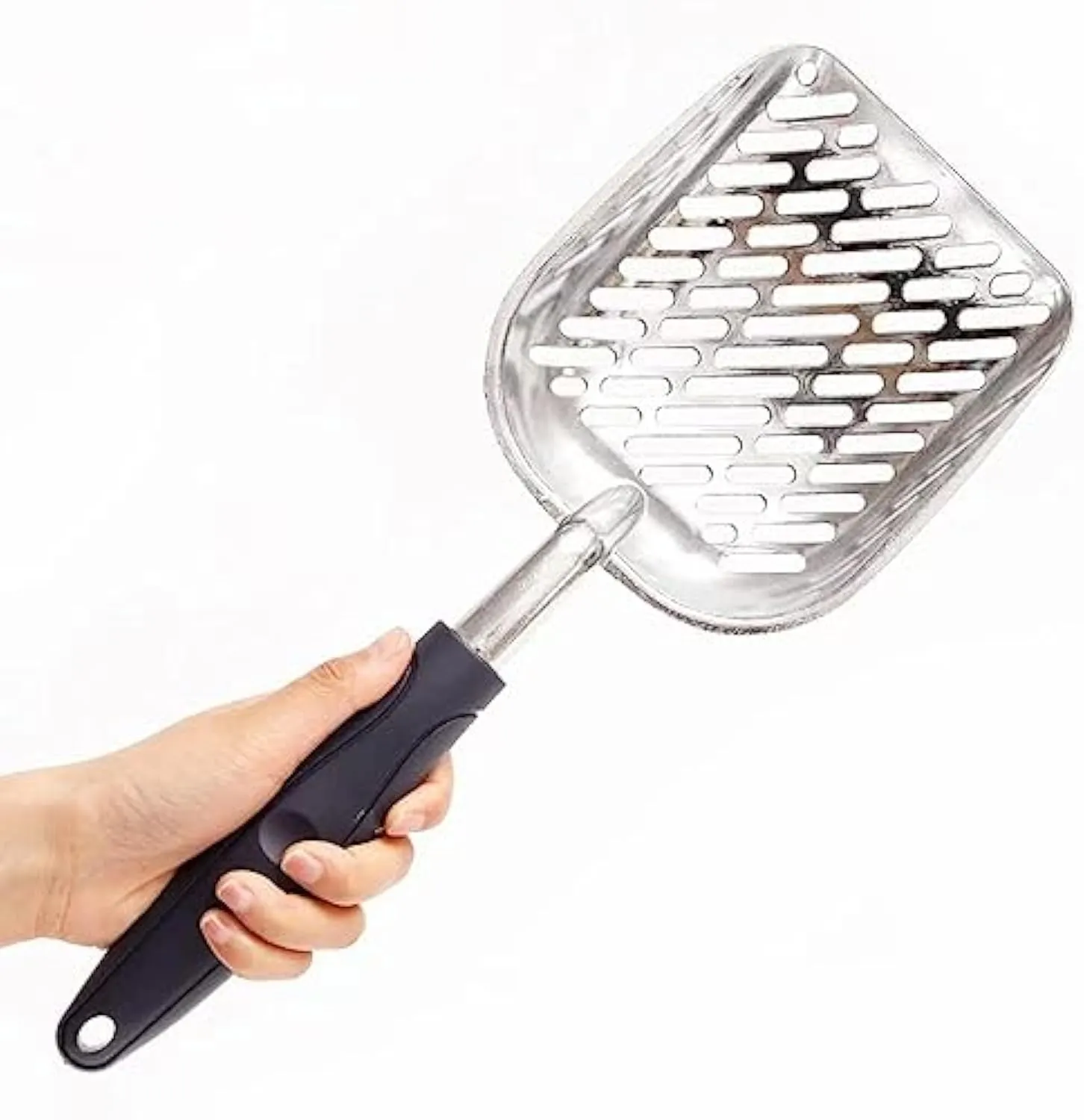 - Cara de pala grande, mango largo, espacio entre orificios de 5 mm, permite arena para gatos utilizable para mantener a los gatitos frescos todos los días, ideal para familias con muchos gatos