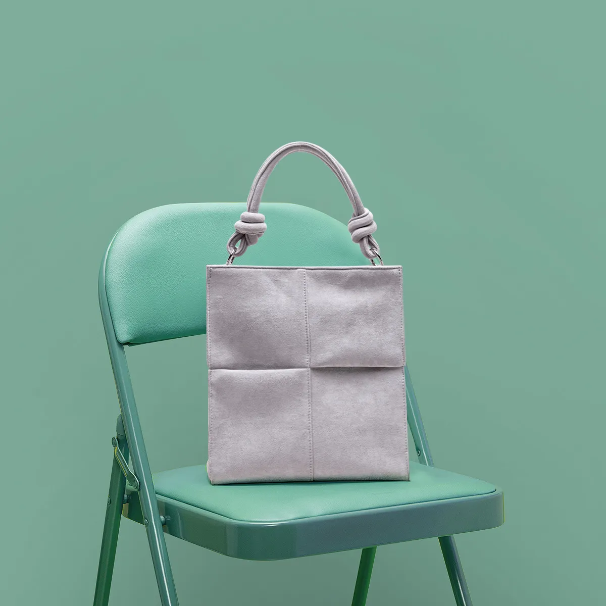 Paneled Check Suede Tote Knot Tote Underarm Bag