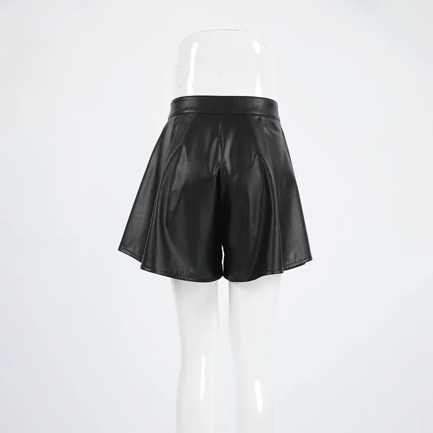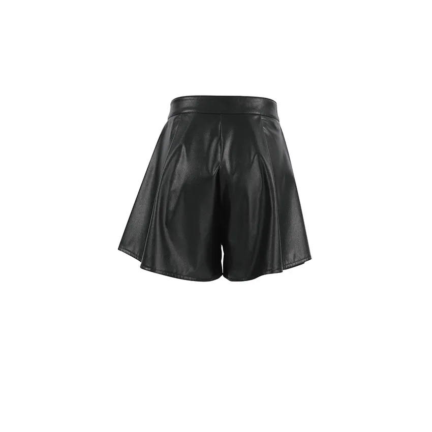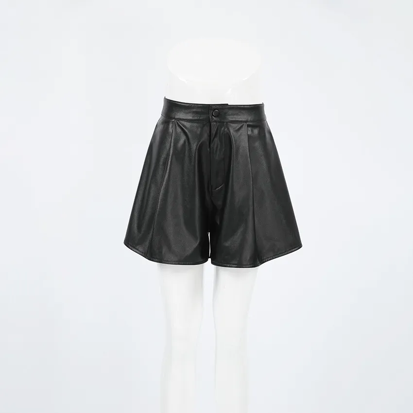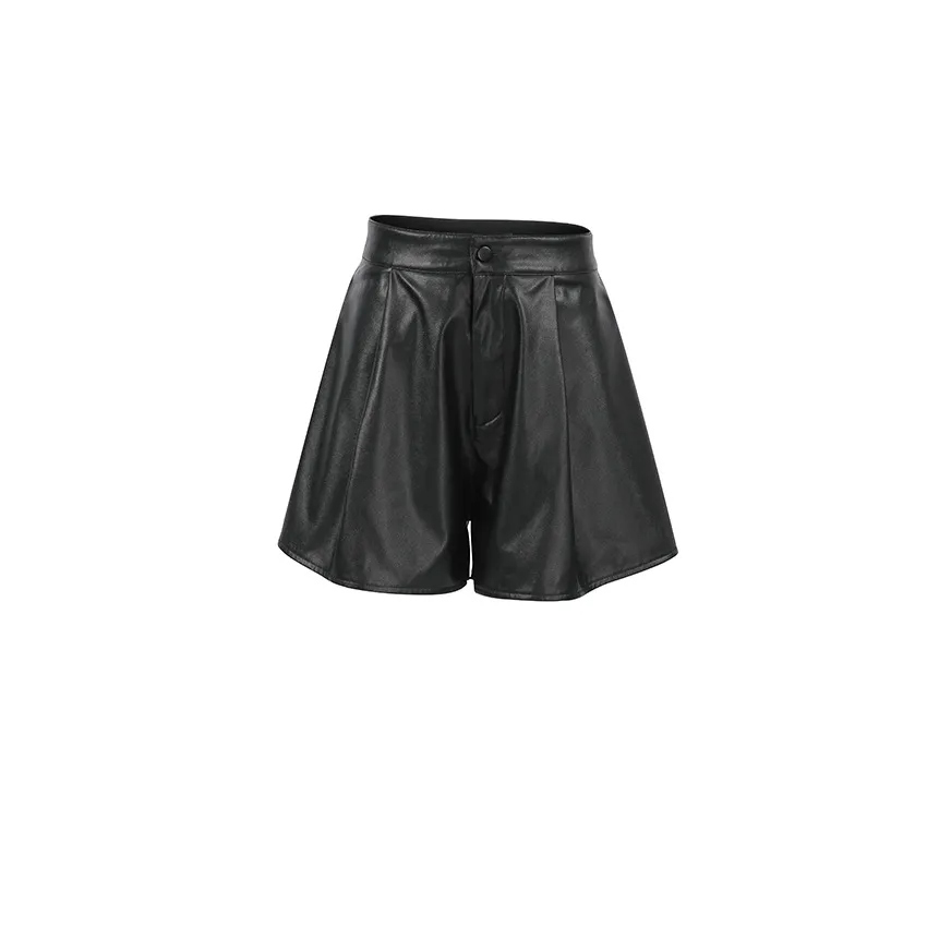 Pantalones cortos de cuero de moda simple de cintura alta de nicho