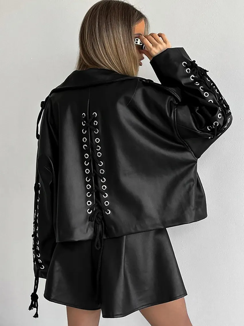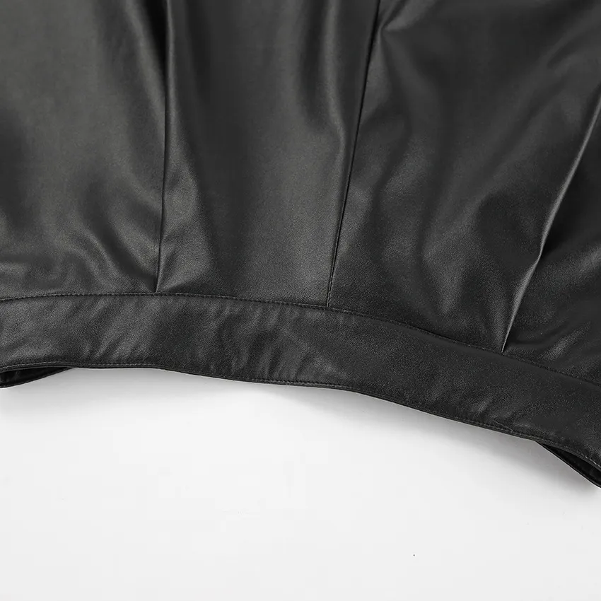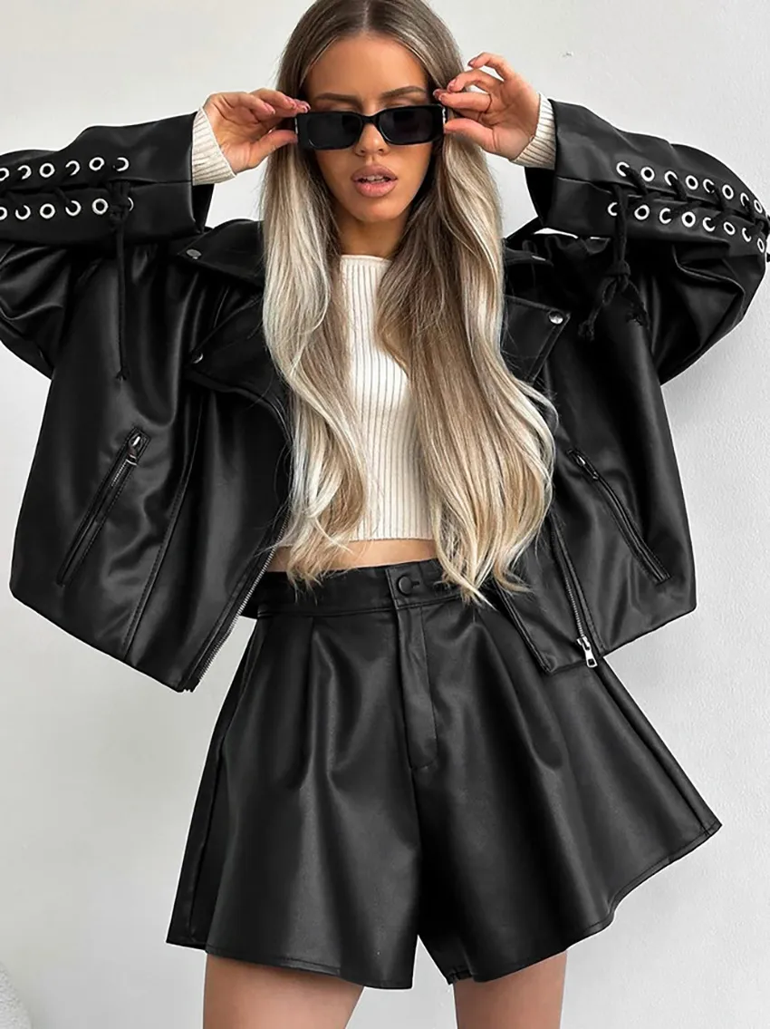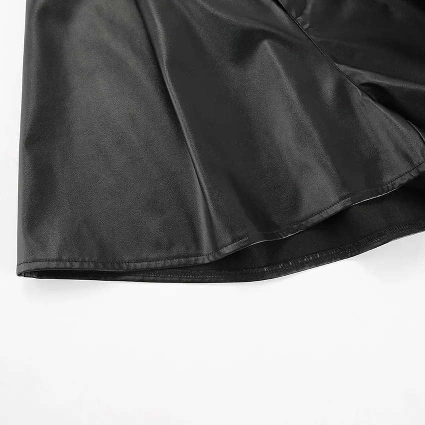 Pantalones cortos de cuero de moda simple de cintura alta de nicho