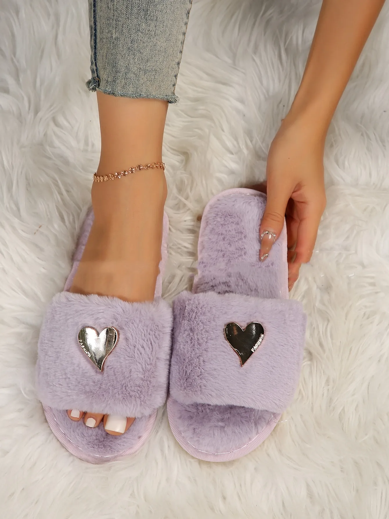 Estas pantuflas, adornadas con un colgante de corazón único, encarnan la estética elegante de la ropa urbana.