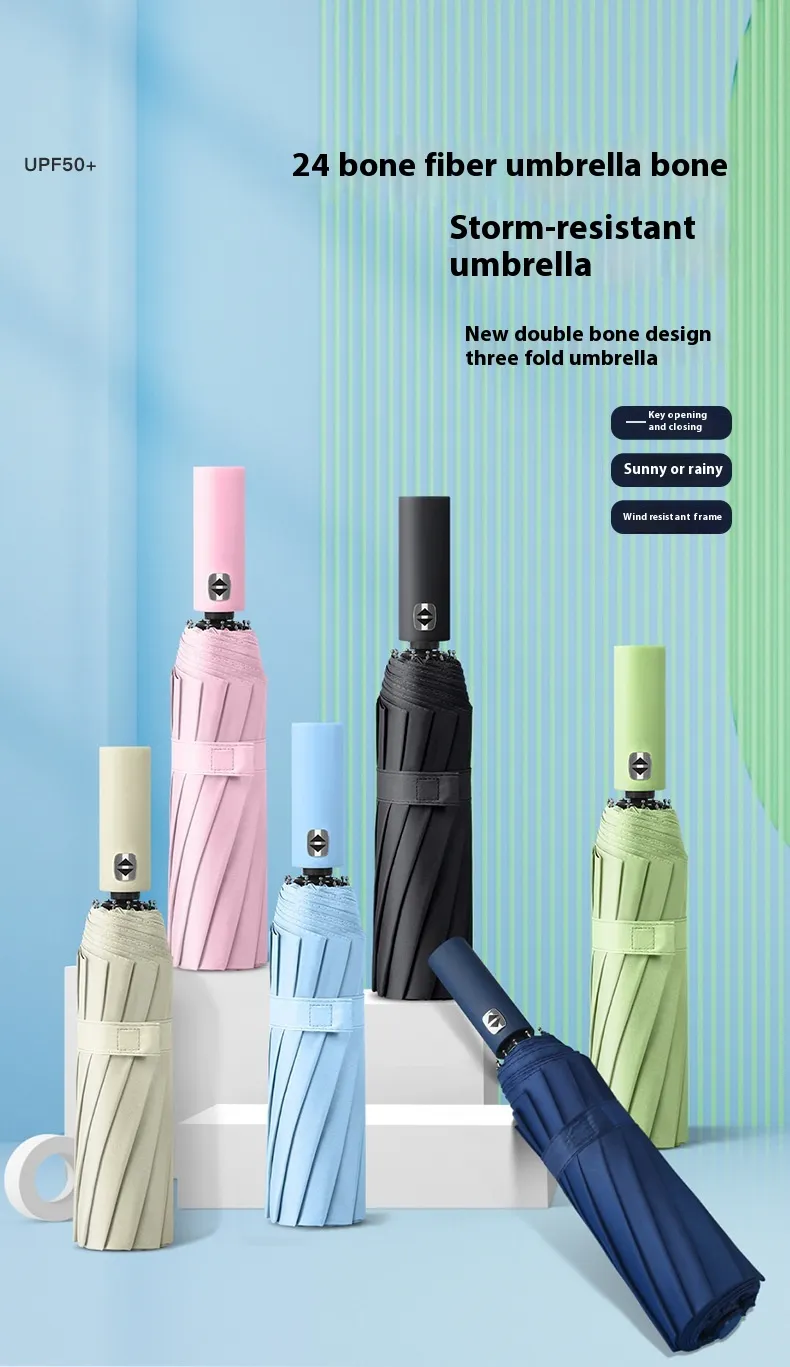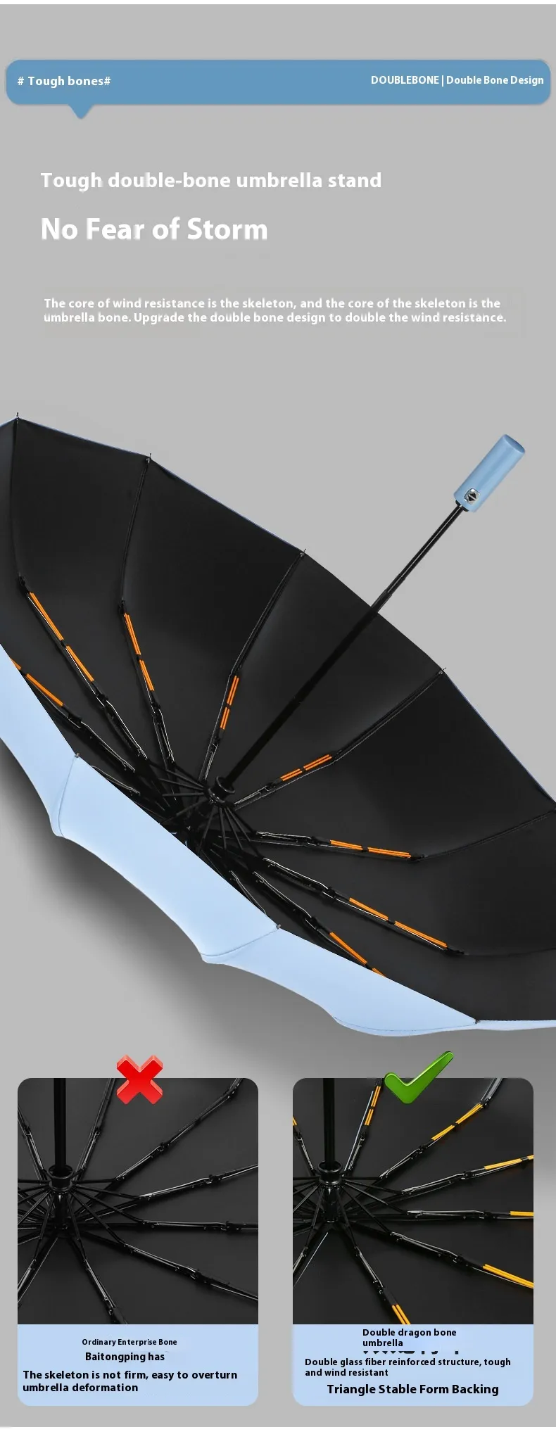 resistente al viento vinilo protección UV sin caja de regalo] Negro, 24 huesos automáticos [12*2 fibra de vidrio anti-viento hueso vinilo protección UV sin