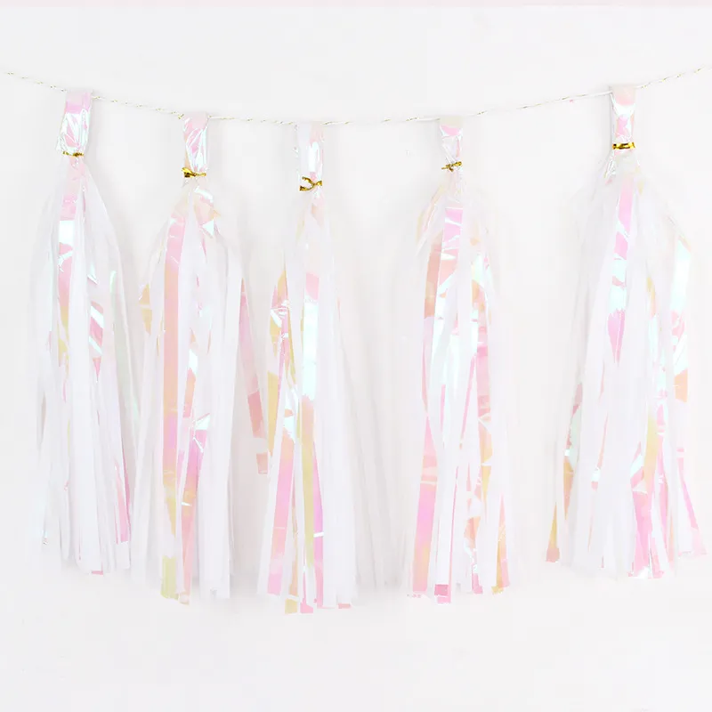 size : White paper tassel, pink paper tassel, light blue paper tassel, yellow paper tassel, green paper tassel, orange paper tassel, purple