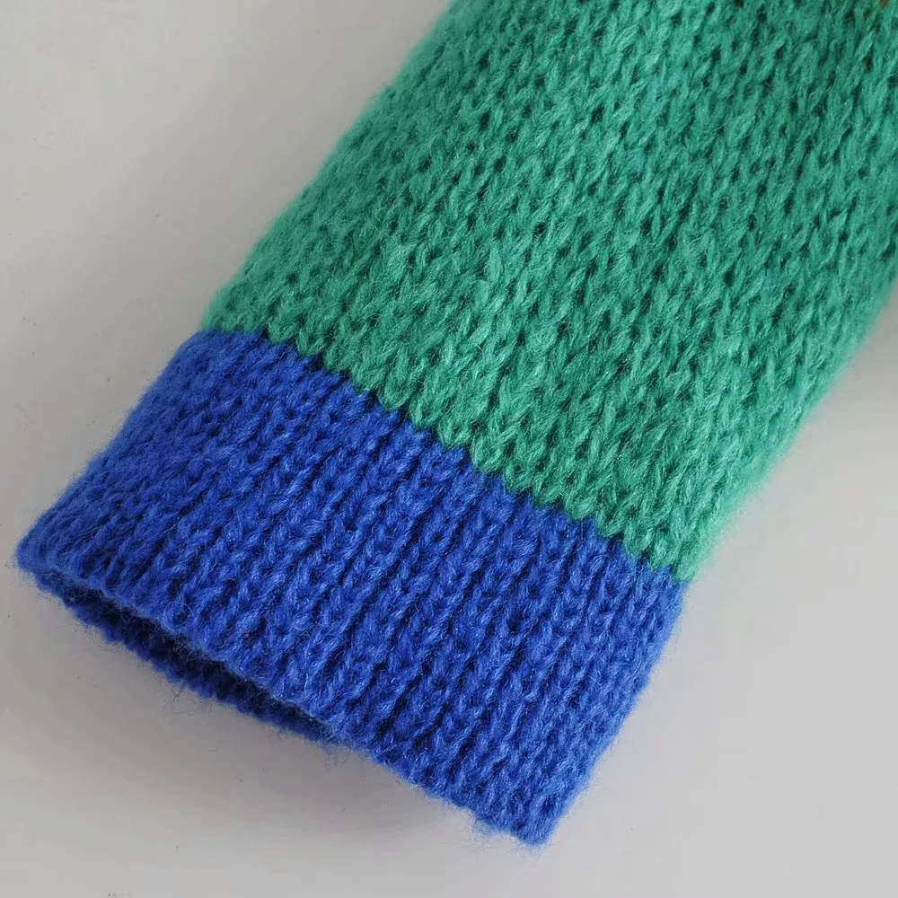 New Zealand’s weather can be unpredictable, with cool mornings and warmer afternoons. This pastel rainbow knit sweater is designed to adapt