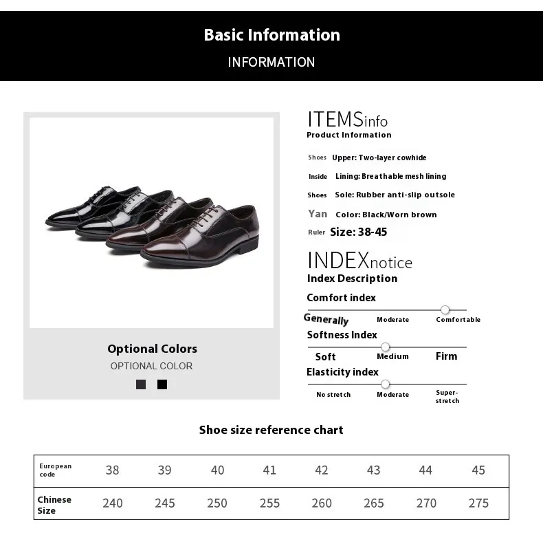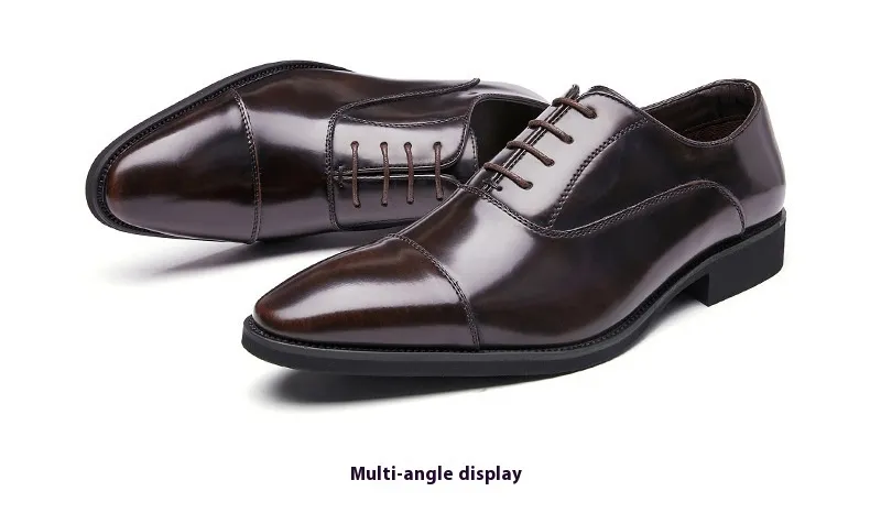 The pointed toe design adds a sharp, stylish element to the shoes, giving them a sleek and sophisticated silhouette. This timeless style not only enhances the overall appearance but also elongates the foot, providing a more refined and elegant look. Whether paired with a suit, dress pants, or business attire, the pointed toe of these shoes creates a sharp, polished finish.