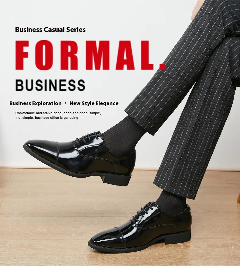 Step into sophistication with our Patent Leather Three-Joint Oxford Shoes. Designed for the modern man who values both style and comfort, these pointed business shoes are the perfect addition to any professional wardrobe. Featuring a sleek patent leather finish, a three-joint construction, and a soft bottom for all-day comfort, these shoes combine elegance with functionality. Whether you're attending a business meeting, a formal event, or looking to elevate your office attire, these shoes will give you the polished look you need.