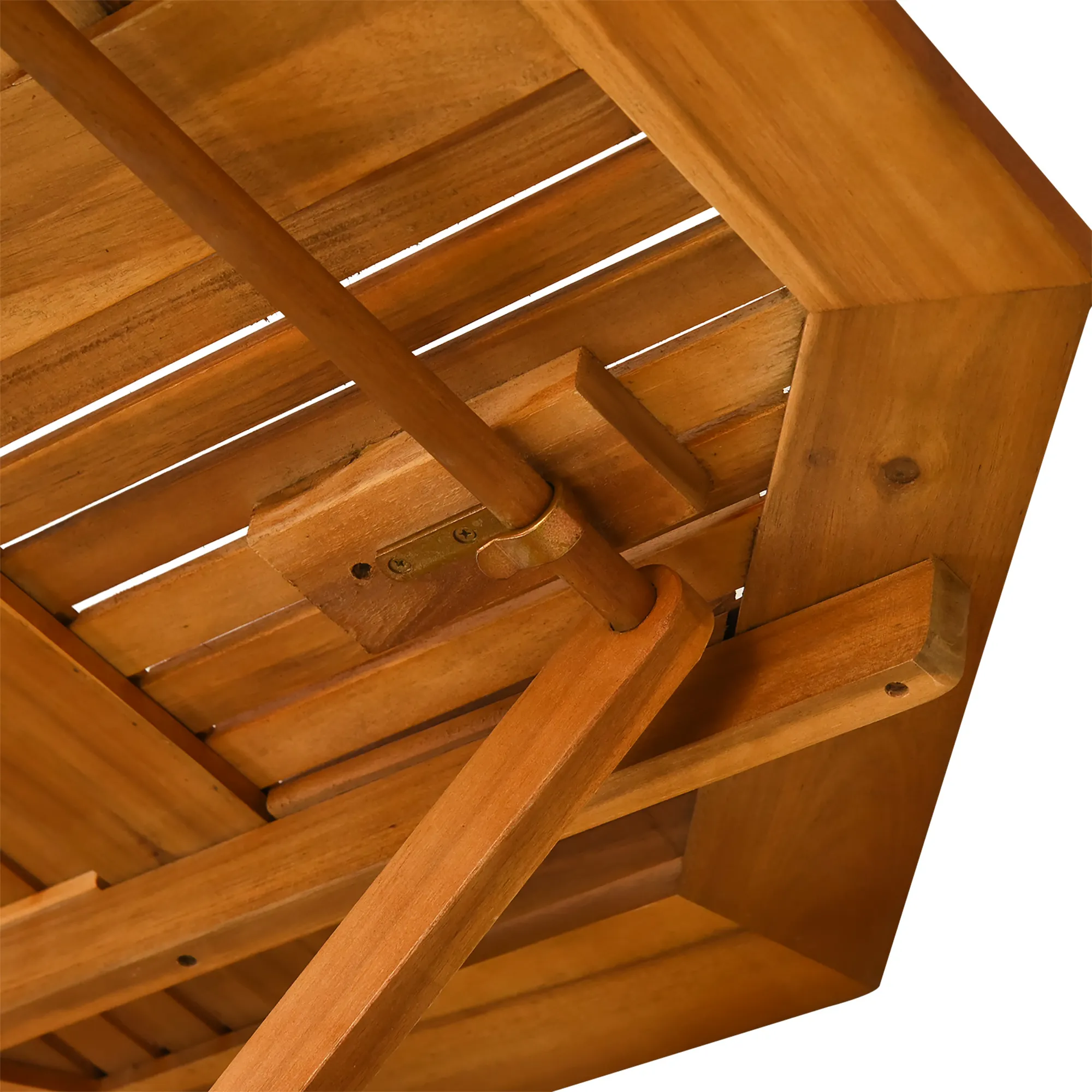Create a simple yet inviting dining space with this charming outdoor table with umbrella hole. Constructed with a beautiful slatted surface from solid and weatherproof acacia wood, the table is naturally sturdy and durable. There is a hole in the center of the table for placing a large umbrella so that you can get shade and enjoy the summer heat. Simple yet elegant, this table offers the site of many enjoyable dinners outdoors. A foldable design allows you to transport and store with great ease. Features: - Constructed of sustainably sourced acacia wood that is weather resistant - Perfect for patio, garden, backyard, or other outdoor area use - Open slatted design for good air ventilation, ideal for outdoor use - Middle hole for placing umbrella to create a fully shaded area - Easy to clean painted finish for low maintenance - Compact design, easy to fold when not in use Specification: - Material: Acacia Wood - Net Weight: 22 lbs. - Color: Natural Wood Color - Overall Dimension: Φ39.25" x 28.25" H - Folded Dimension: 44" L x 36.5" W x 3" H - Max Load: 176 lbs Set up outdoor seating for company fast, or bring a bistro table and chairs with you on the go. Outsunny has a bistro table, and chairs set that folds up. They're made of sleek varnished acacia wood. The backs are tilted for comfort, and both the seats and backrests have a slat design to keep cool in the summer. With a folding table, you can enjoy eating outside with a friend, or take it out from the trunk to enjoy concerts, camping, and other outdoor events. Get out, get comfy, get Outsunny. Features: - Three-piece patio bistro set with a table and two chairs - Foldable for easy transportation and storage - Made varnished acacia wood for a sleek rustic look - Slatted design allows for airflow and easy maintenance - No assembly is required, ready to use out of the box Specification: - Color: Teak - Material: Acacia Wood - Net Weight: 24 lbs. - Table Dimensions: 21.75" L x 21.75" W x 28.75" H - Chair Dimensions: 20" L x 16.25" W x 32.25" H - Folded Dimensions: 37" L x 16.5" W x 2.75" H (Chair), 38.5" L x 21.75" W x 2.75" H (Table) - Seat Depth: 12.25" D - Seat Height: 17.25" H - Backrest Height: 18" H - Weight Capacity: 175 lbs. (Table), 265 lbs. (Chair) Package Includes: - 1 x Outdoor Wooden Folding Table - 2 x Outdoor Wooden Folding Chair Sometimes patio furniture can be heavy or require extra maintenance. Outsunny's outdoor aluminum bistro set offers a table and chairs without extra worry. Aluminum frames provide a sleek, water-safe surface, that's easy to pick up and rearrange. The surfaces are slatted to keep your seat cool and your table dry. The slats offer real wood reinforced with plastic water endurance. Enjoy picnics, play a game, or serve a drink to a friend in the nice warm weather. Features: - Aluminum frames make our bistro table and chairs water safe and easy to pick up - A composite surface helps water slide right off yet still has the style of wood - Slats keep your seat cool, and make draining your table easy - Anti-slip footpads protect both the foot tubes and the floor - Assembly required Specification: - Color: Gray, Silver - Materials: Aluminum, Wood Plastic Composite (Polystyrene) - Table Dimensions: 23.5" L x 23.5" W x 27.5" H - Chair Dimensions: 21.25" W x 23.25" D x 28.75" H - Seat Dimensions: 17.75" W x 19.25" D - Seat Height to the Floor: 17.75" H - Slat Size: 2.25" W x 0.5" T - Weight Capacity: 110 lbs. (Table), 242 lbs. (Chair) Package Includes: - 1 x Table - 2 x Chair - 1 x Manual.