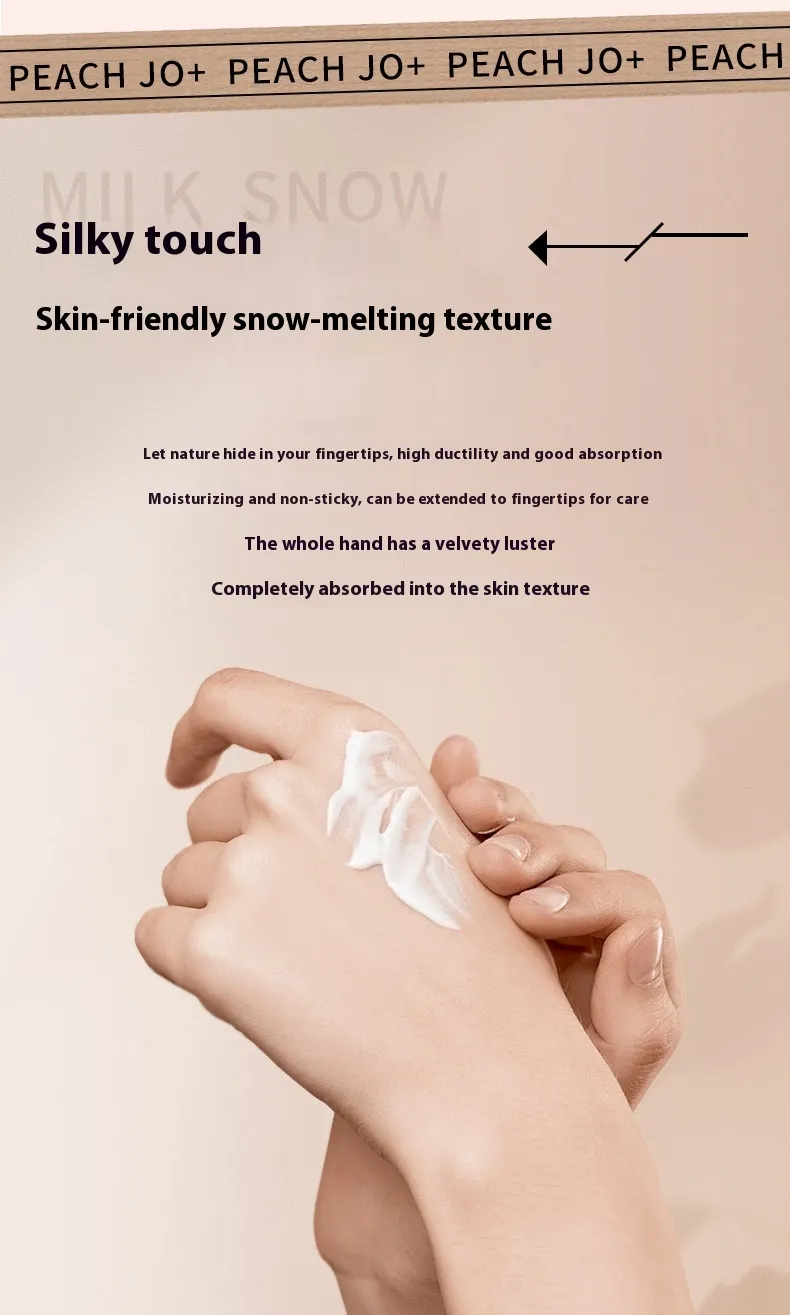 Peach JO+ Perfume Hand Cream delivers very smooth hands with long-lasting fragrance, deep moisture, and a non-greasy finish for daily elegance.