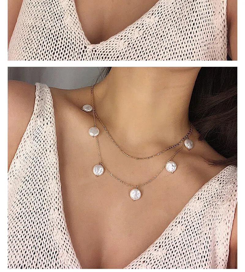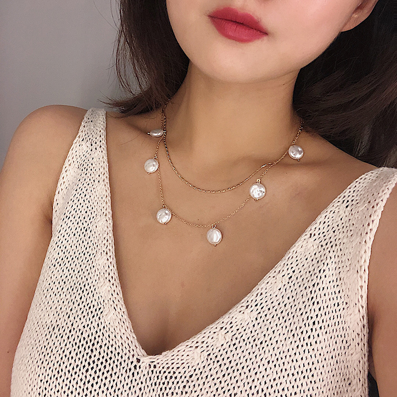 Pearl pendant multilayer necklace female