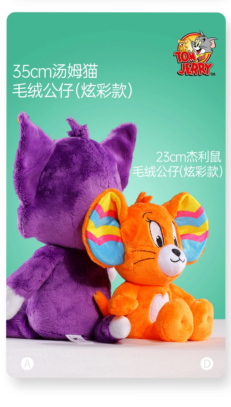 Personajes icónicos: Con el dúo atemporal Tom y Jerry, estos peluches dan vida a los entrañables personajes de dibujos animados. Sus encantadores diseños capturan la esencia del juguetón y travieso gato y ratón, convirtiéndolos en los favoritos de fans de todas las edades.
