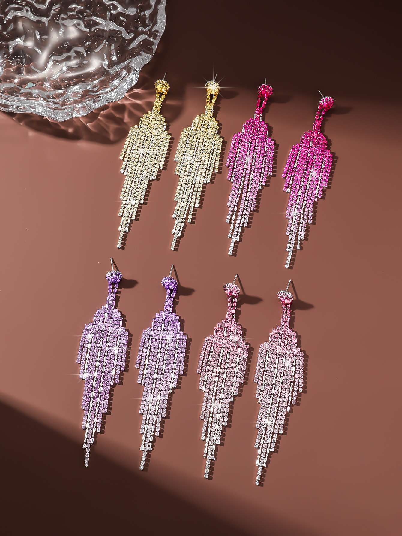 Agregue un toque de lujo a su colección de accesorios con los Aretes de diseño único, lujosos, asequibles y de alta calidad con borlas de diamantes de imitación.