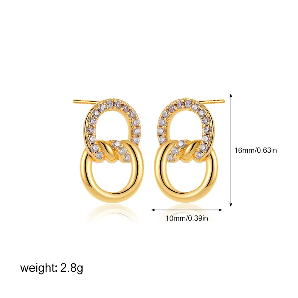 La combinación de oro y circón brillante hace de estos aretes un accesorio versátil que realza cualquier atuendo, desde conjuntos casuales hasta elegantes trajes de noche.