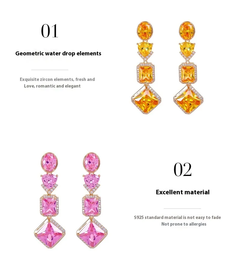 Aretes de botón de plata S925 con borlas geométricas, gotas de agua, circonitas de color, oro de 18 quilates, nicho de lujo, temperamento - Elegancia en cada detalle