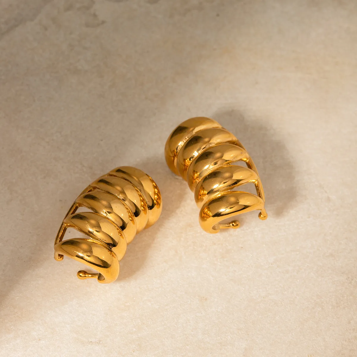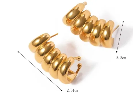 El elegante diseño de rayas huecas les da a estos aretes un toque moderno, mientras que el chapado en oro de 18 quilates les añade un toque de glamour y refinamiento. La base de acero inoxidable garantiza durabilidad y un uso hipoalergénico, haciéndolos aptos para orejas sensibles. Diseñados con la comodidad y el estilo en mente, estos aretes livianos son fáciles de usar durante todo el día, brindando un accesorio sutil pero llamativo que complementa cualquier guardarropa.