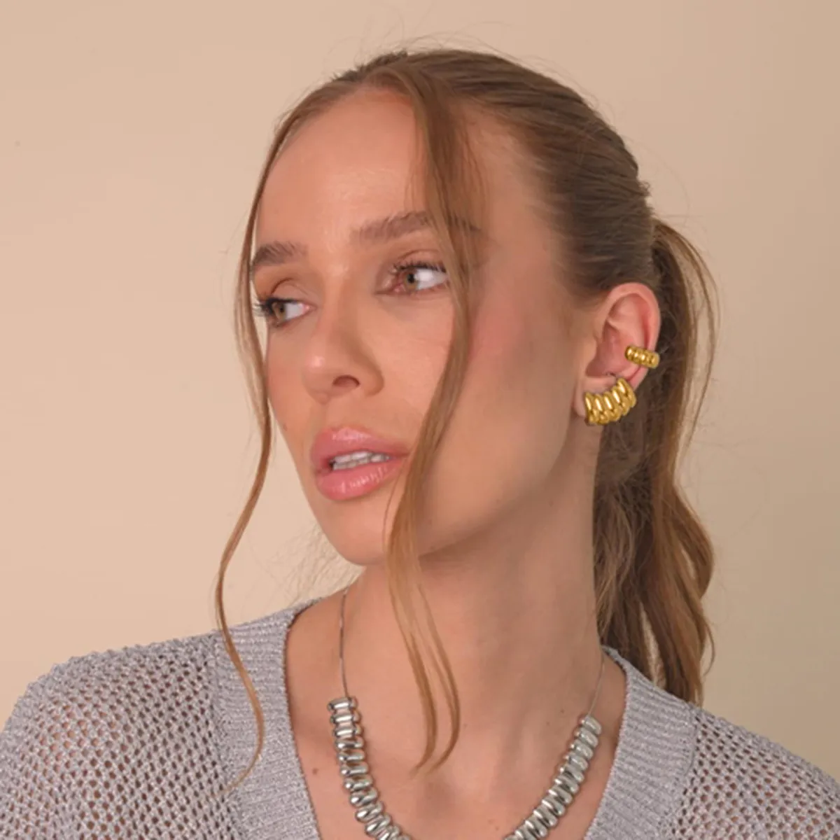 Ideales como regalo para cumpleaños, aniversarios o cualquier ocasión especial, estos aretes huecos de rayas de acero inoxidable en oro de 18 quilates ofrecen una opción única y moderna para las mujeres que aprecian los diseños elegantes y minimalistas. Con su estilo versátil, se pueden combinar fácilmente con atuendos casuales y formales, lo que los convierte en un complemento imprescindible para cualquier colección de joyas.