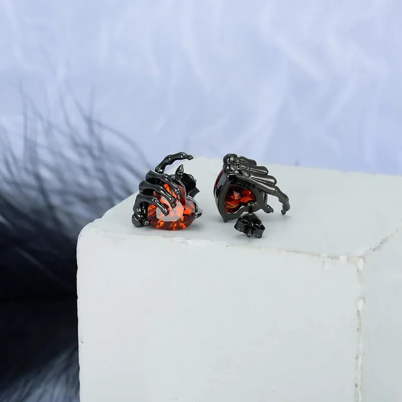Pendientes de mano fantasma con forma de corazón y diamantes de la serie retro oscura