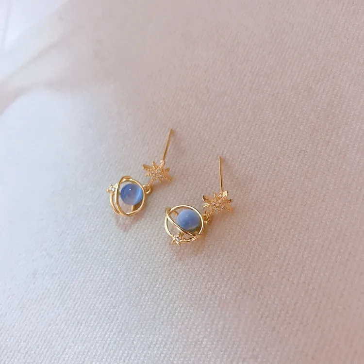 La combinación de ópalo azul, conocido por su fascinante juego de colores, y las piedras de circón crea un contraste deslumbrante , lo que hace que estos aretes sean un complemento perfecto para cualquier atuendo formal o informal. Ya sea que asistas a una ocasión especial o simplemente quieras realzar tu look diario, estos pendientes ofrecen lujo y elegancia. Características principales de los pendientes Star Universe Zircon S925 con ópalo azul: Ópalo azul celestial para un brillo etéreo. El ópalo azul, conocido por sus vibrantes tonos azules y su brillo iridiscente, es el elemento central de estos pendientes. Los ópalos se asocian a menudo con poderes místicos y se cree que aportan creatividad, equilibrio emocional y crecimiento espiritual. El ópalo azul representa la inmensidad y la serenidad del universo, lo que lo convierte en la pieza central perfecta para estos impresionantes pendientes. Su singular juego de colores y su radiante apariencia capturan la esencia del cielo nocturno, evocando la belleza de las estrellas lejanas y la energía cósmica.