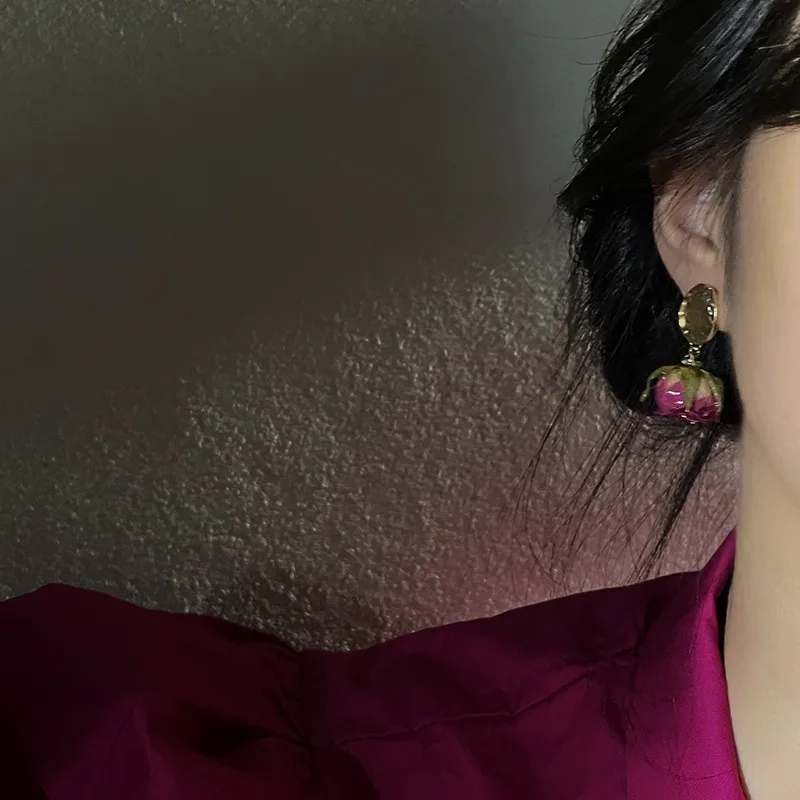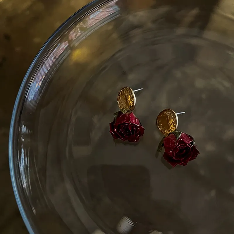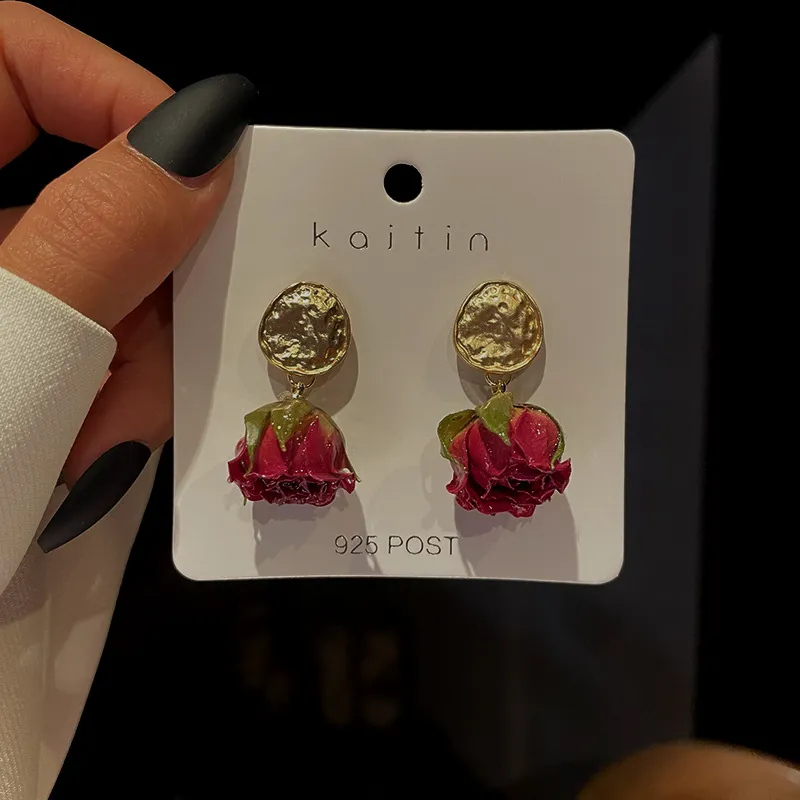 Pendientes de rosa eterna para mujer, estilo francés