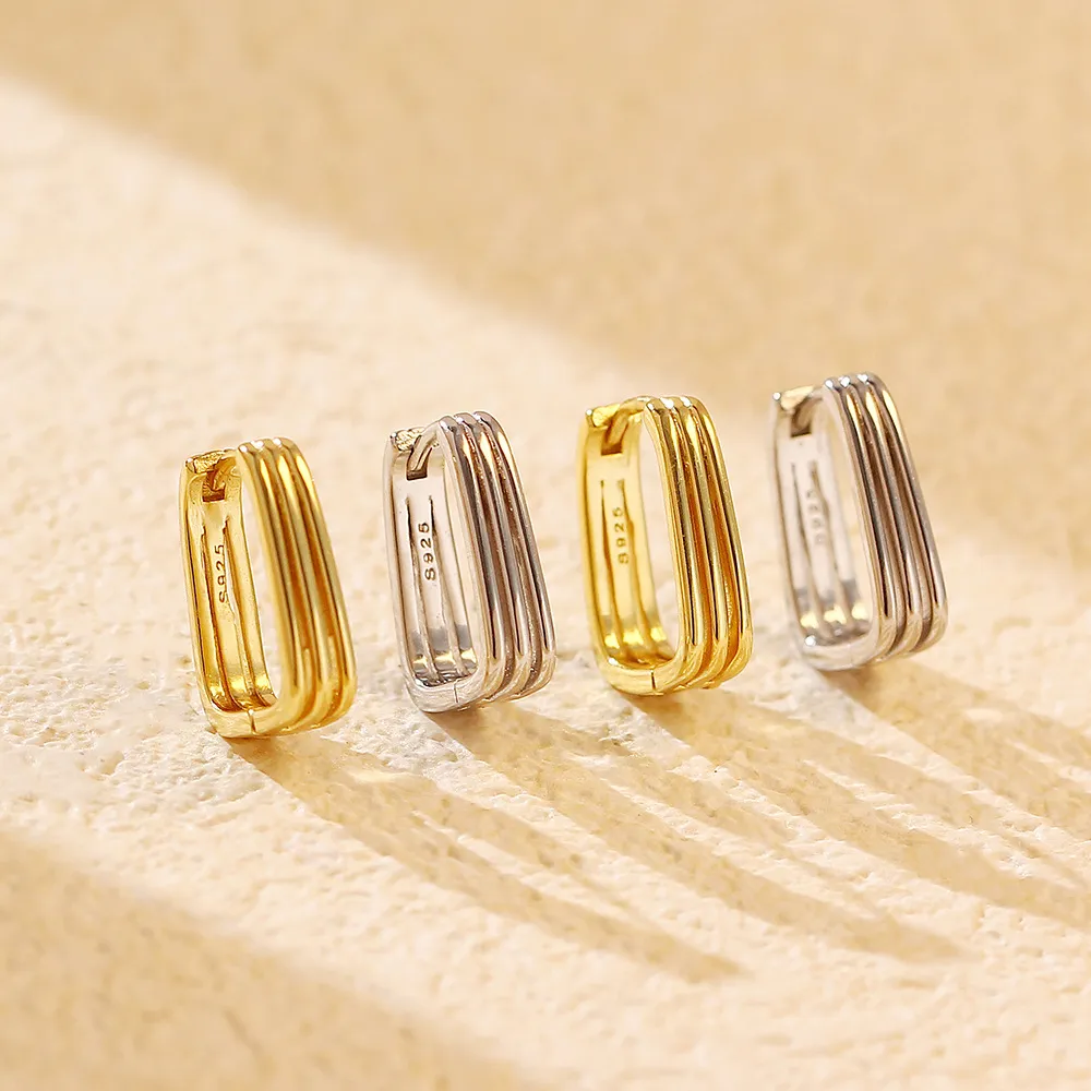 El diseño geométrico de estos pendientes ofrece un aspecto moderno pero atemporal que complementa varios estilos. Las líneas elegantes y la forma sofisticada hacen de estos pendientes un accesorio versátil que realza cualquier atuendo. Ya sea que prefieras diseños minimalistas o piezas llamativas, estos pendientes son la opción perfecta para añadir un toque de elegancia a tu look. 2. Duraderos y de larga duración: estos pendientes están hechos de plata de ley para durar. El material de alta calidad garantiza que no solo mantendrán su brillo, sino que también resistirán el desgaste del uso diario. Puedes usarlos durante años sin preocuparte por su calidad, lo que los convierte en una inversión duradera en tu colección de joyas. 3. Fáciles de combinar: el diseño limpio y sencillo de los delicados pendientes geométricos de plata los hace fáciles de combinar con casi cualquier atuendo. Combinan bien con ropa informal, de oficina o de noche, ofreciendo infinitas posibilidades de estilo. Ya sea que uses un elegante vestido negro o una camisa informal con jeans, estos aretes le dan un toque chic y sofisticado a tu look.