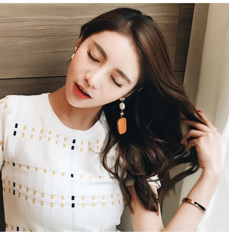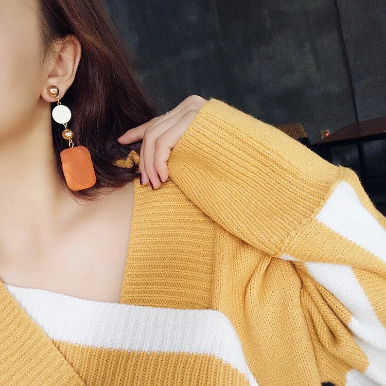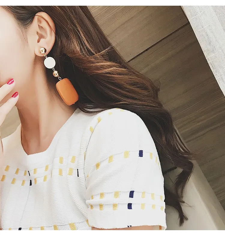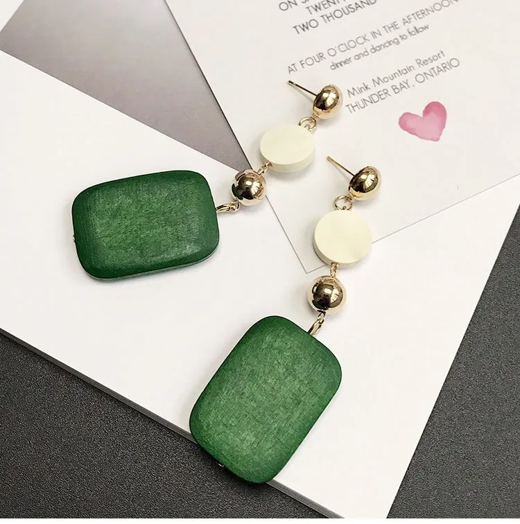 Aretes de madera geométricos retro, estilo coreano, temperamento simple, aretes largos de madera, pendientes de tendencia con personalidad. Material: madera
