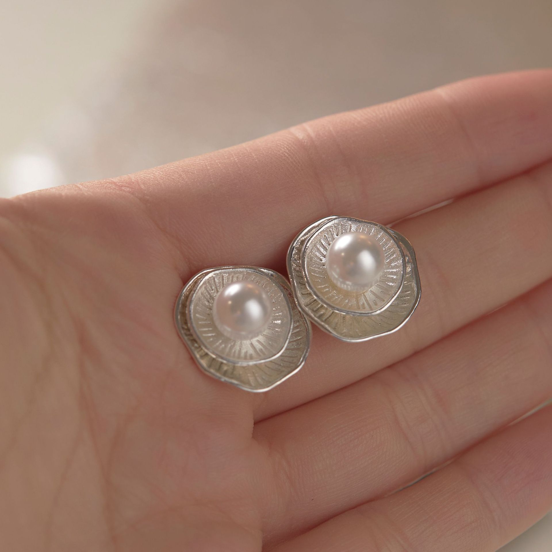 Ya sea que busques el accesorio perfecto para una ocasión especial o una pieza atemporal para el dÃa a dÃa, los pendientes minimalistas de perla de plata esmerilada son la opción ideal. Son un regalo muy considerado para tus seres queridos o un capricho encantador para ti.