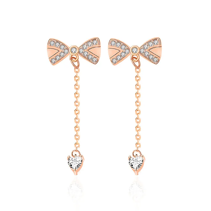 El elemento central de estos pendientes es el delicado lazo, que simboliza la gracia, la feminidad y un encanto atemporal. Las suaves curvas y la elegante estructura del lazo añaden un toque de sofisticación, lo que los hace perfectos tanto para ocasiones informales como formales.