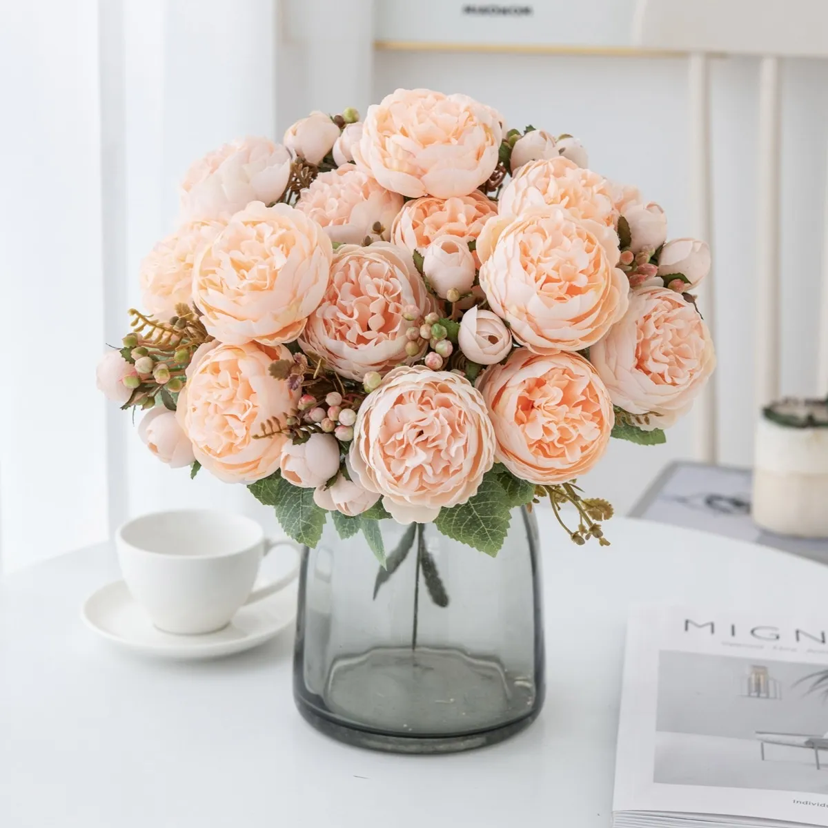 Perfect for living rooms, bedrooms, offices, or dining tables, this peony bouquet adds charm and sophistication to any setting. It can also be used for weddings, parties, or as a centerpiece.