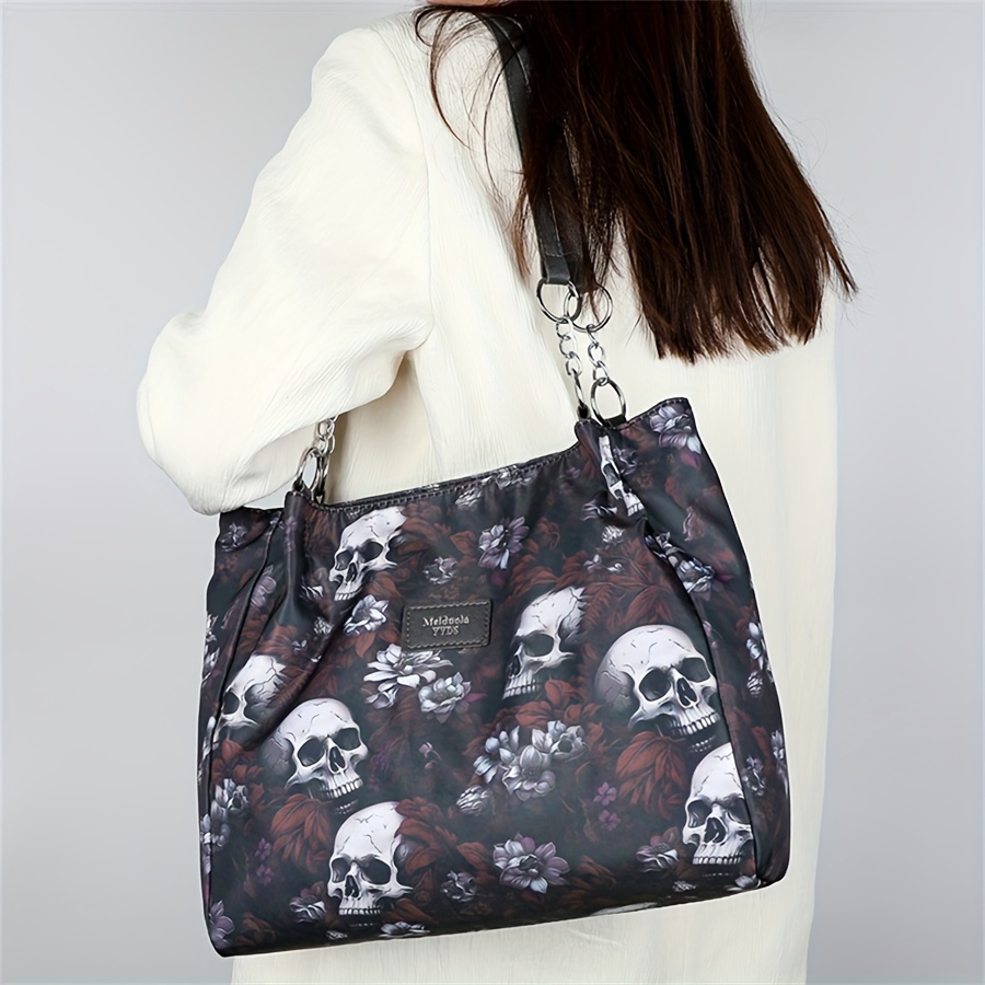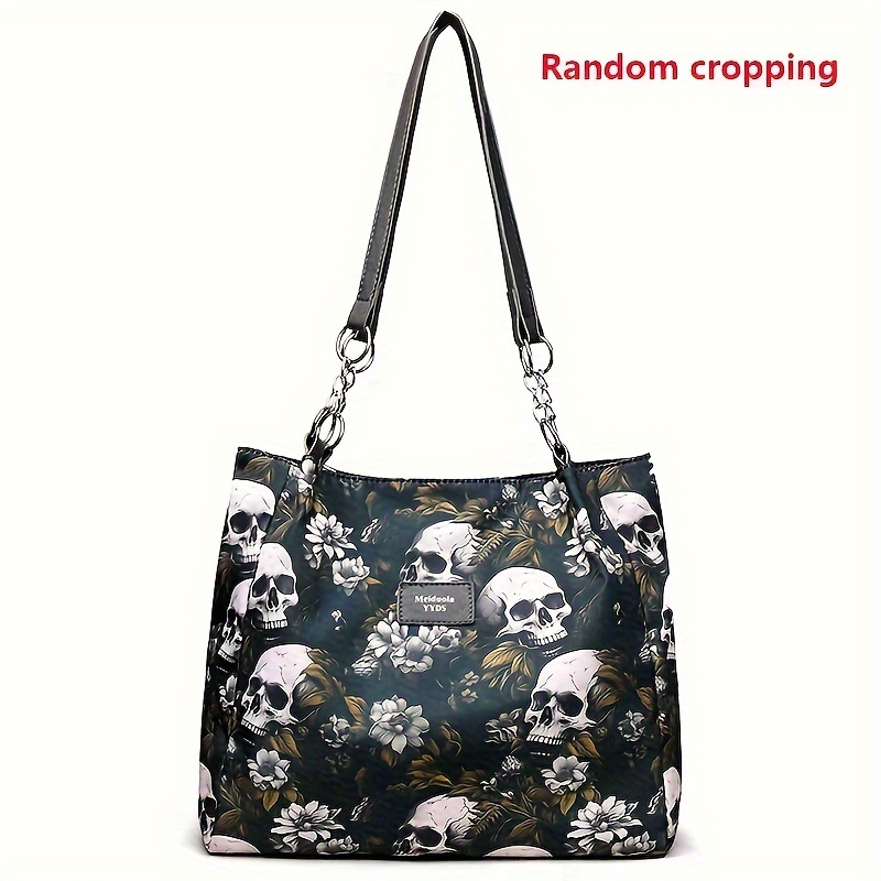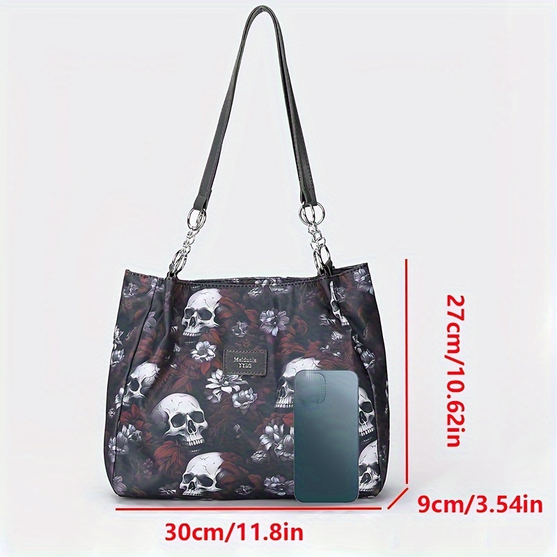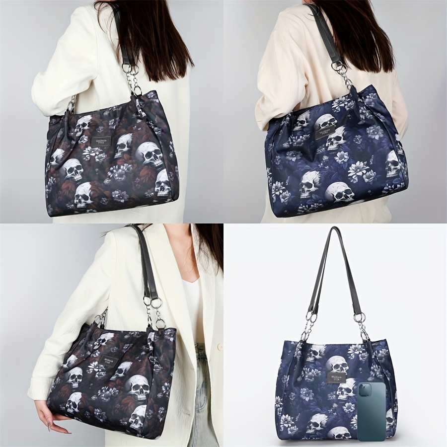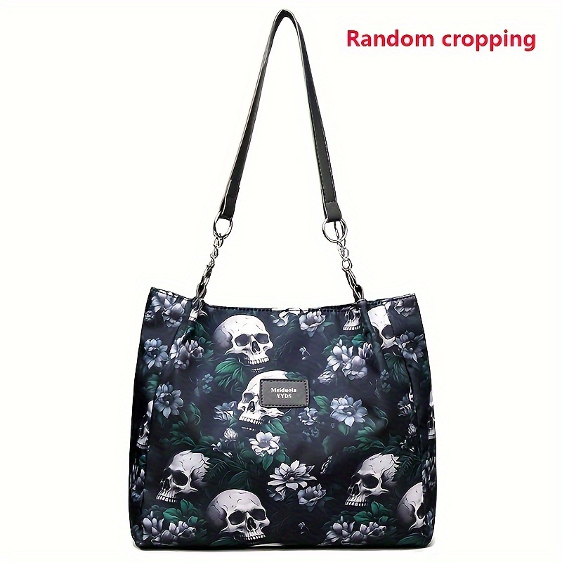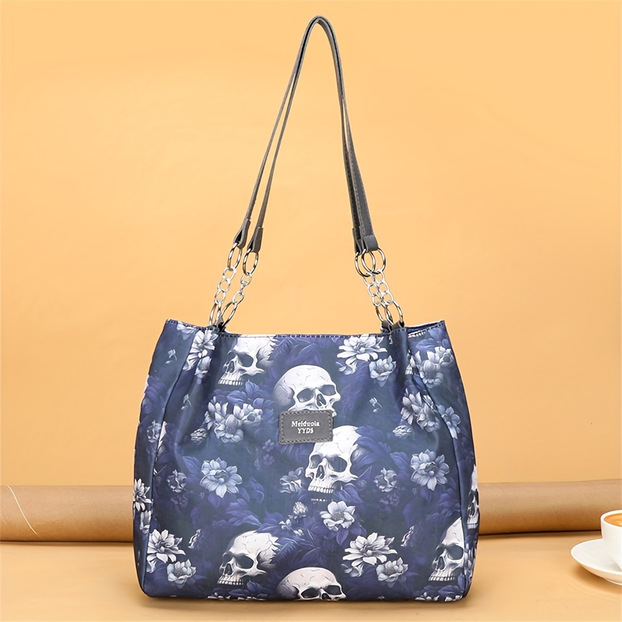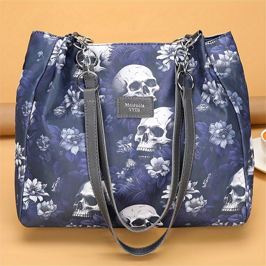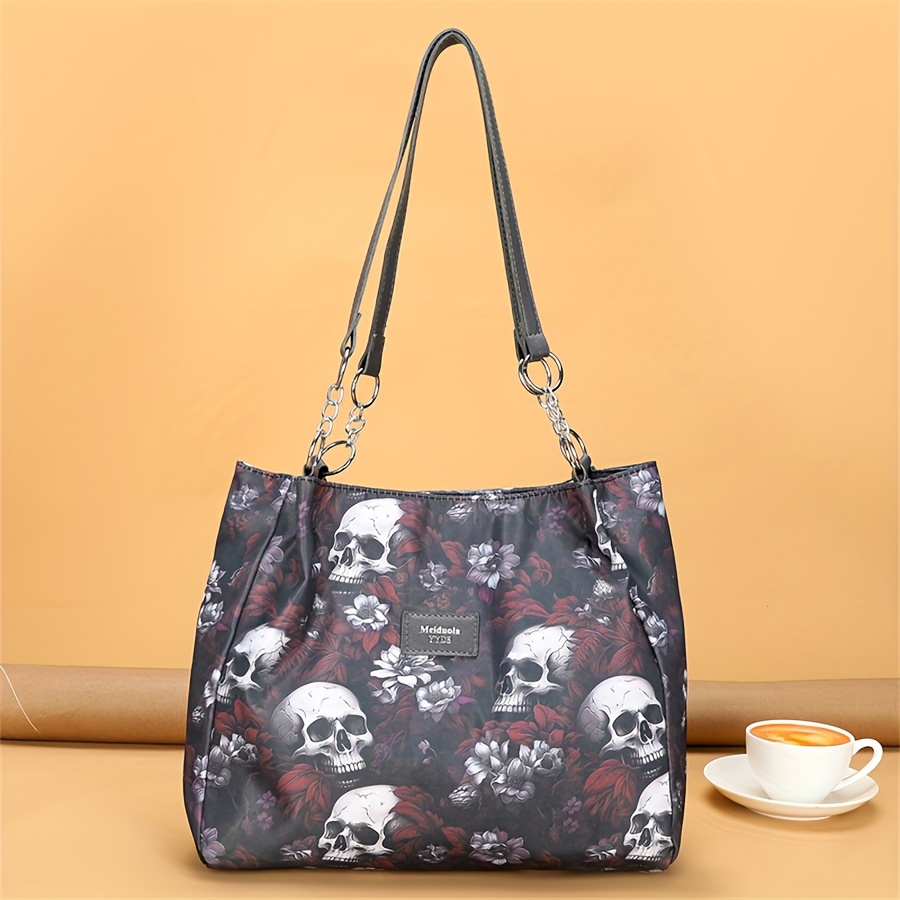 Perfect Lily Women's Versatile Nylon Tote Bag – Large Capacity with Punk Style Flower Skull Decor