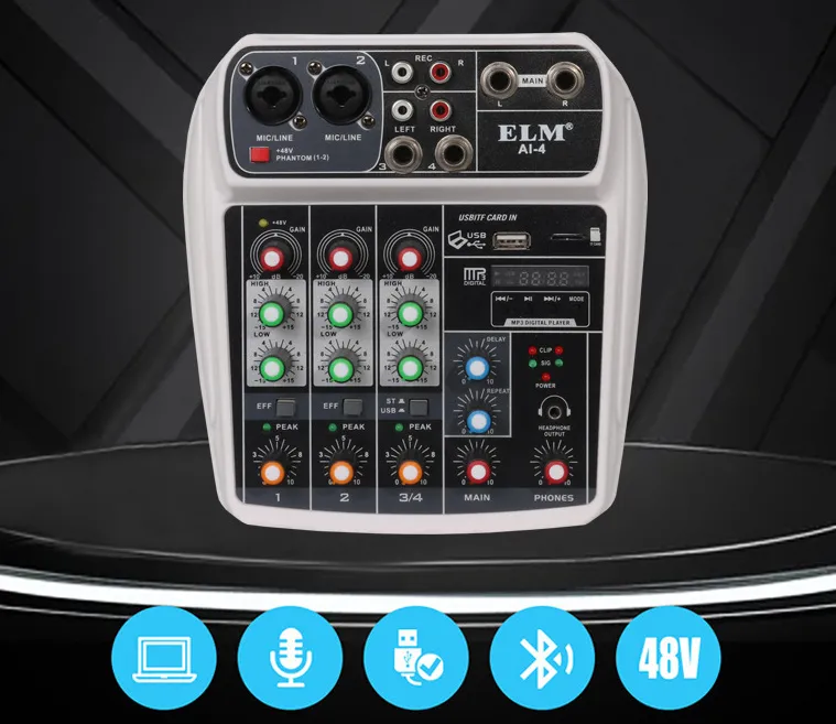 The mixer features simple, intuitive controls for quick adjustments during use. The clear, labeled buttons and easy-to-read dials allow for seamless adjustments, whether you're performing live, recording, or practicing in the studio. You don’t need to be a professional audio engineer to use this mixer effectively—it’s designed for ease of use and accessibility for beginners and experts alike.