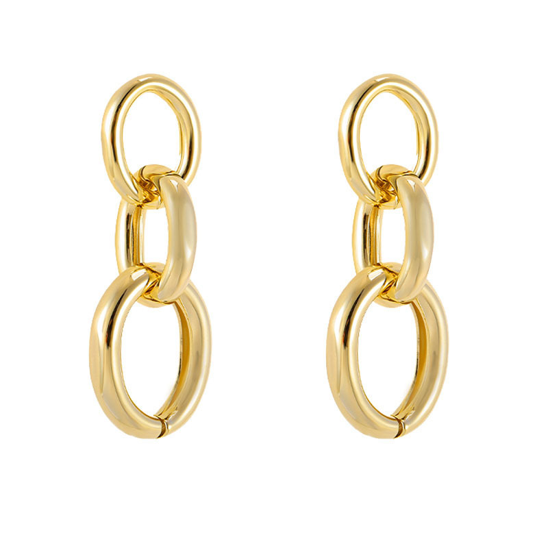 The chain design in these earrings adds texture and movement, making them a visually dynamic accessory. Chains have long been a symbol of strength and unity, and when integrated into jewelry, they create a look that is both stylish and meaningful. The links of the chain are carefully designed to ensure fluidity and elegance, creating a lightweight yet bold piece that catches the eye with every turn of your head.The chain design gives the earrings a sophisticated, minimalist appearance, making them perfect for pairing with both casual and formal outfits. Whether worn alone or layered with other earrings, the chains will add a touch of refinement to any look.