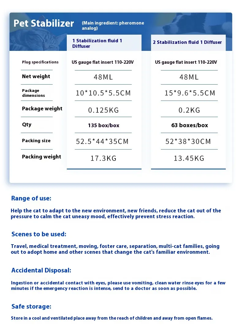 The Pet Calming Pheromone Diffuser is designed to support a calm and relaxed home environment for pets experiencing anxiety or stress.