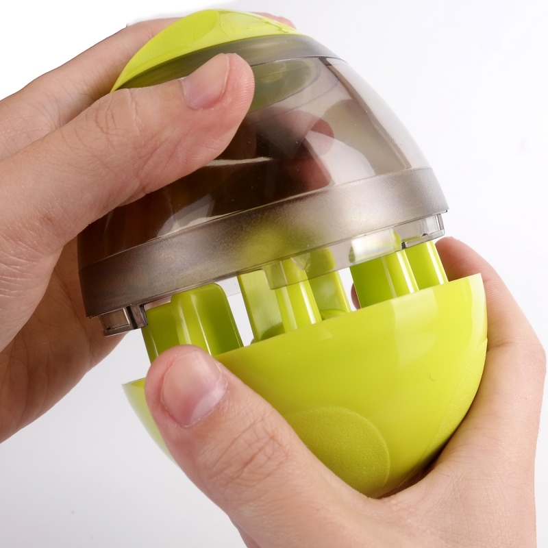 5. Tumbler design makes it roll in a small area while playing. The dog food won`t be sprinkled everywhere.