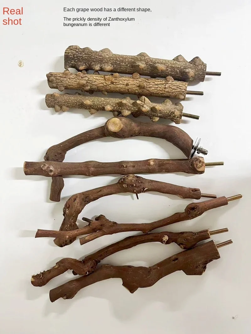 Pet Standing Stick Wild Grape Wood Pole Parrot Cockatiel Parakeet Station Board Bite Claw Grinding Toy Bird Cage Accessories