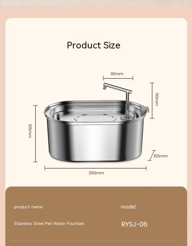 Pet Water Feeder Stainless Steel Antibacterial Water Purification