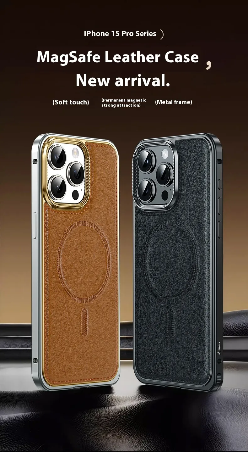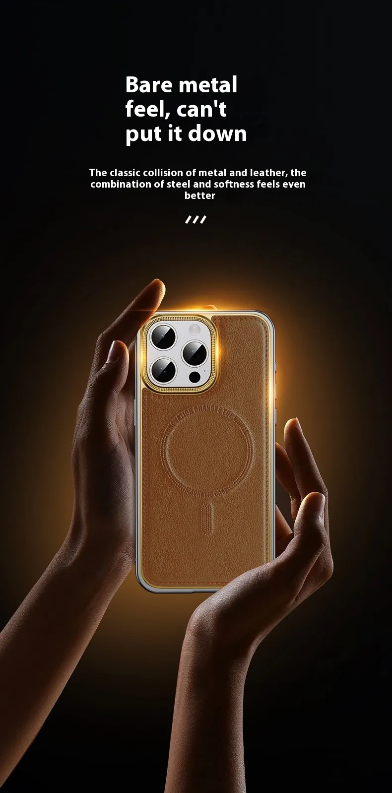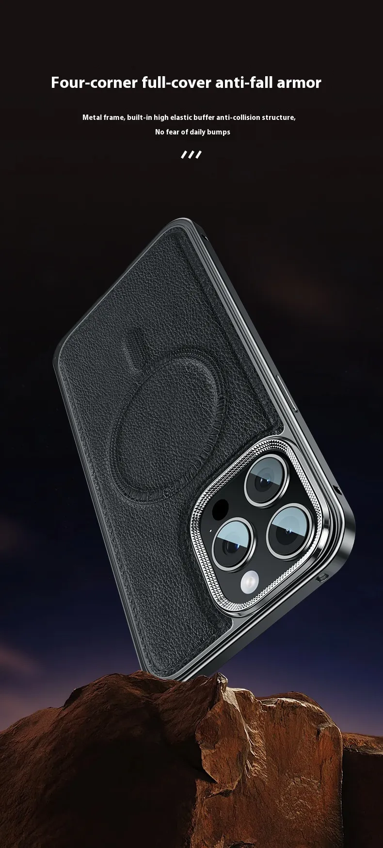 Phone Case Spring Fastener Leather Pattern Cover Drop-resistant Magnetic Suction