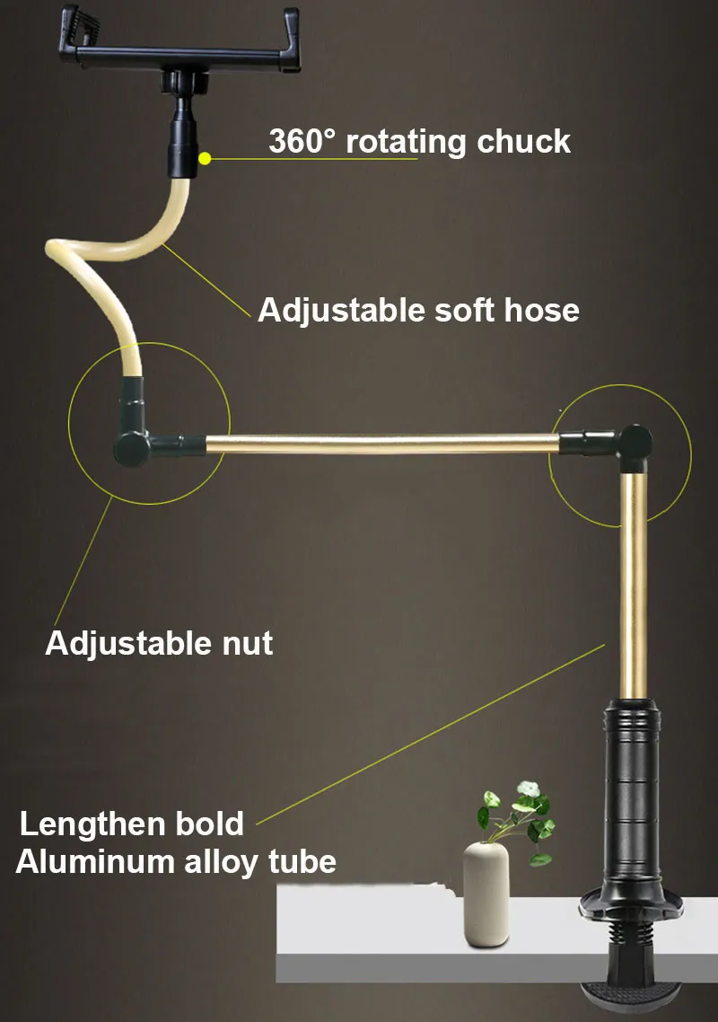 Adjustable and Flexible Design: The Phone Mount for Bed features an adjustable arm, allowing you to customize the viewing