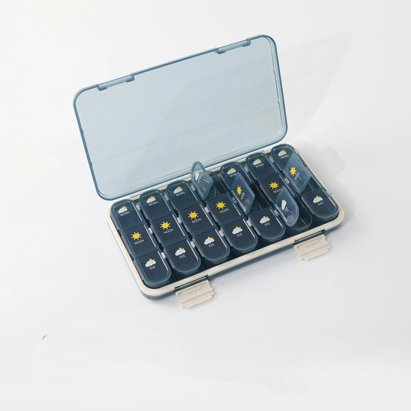 - Clear Lids: Enables easy visibility of the contents, so you can quickly check if you’ve taken your medication.