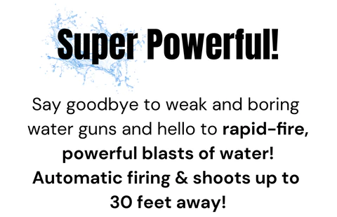 Nuestra pistola de agua tiene una gran capacidad, con capacidad para hasta 330 ml de agua, y funciona con una potente batería de 7,4 V y 1500 mAh. Con un alcance de disparo de hasta 10-12 metros, puedes empapar fácilmente a tus oponentes dondequiera que estén. Usar nuestra pistola de agua es muy fácil: simplemente llena el tanque con agua limpia y aprieta el gatillo para disparar. Es perfecto para jugar al aire libre en verano, ya sea en el jardín, la piscina, la playa, en una guerra de agua o en una fiesta. Con unas medidas de 50 x 20 cm, nuestro lanzador de agua de llenado automático es el juguete acuático definitivo para niños y adultos. ¡Prepárate para una diversión acuática a raudales!