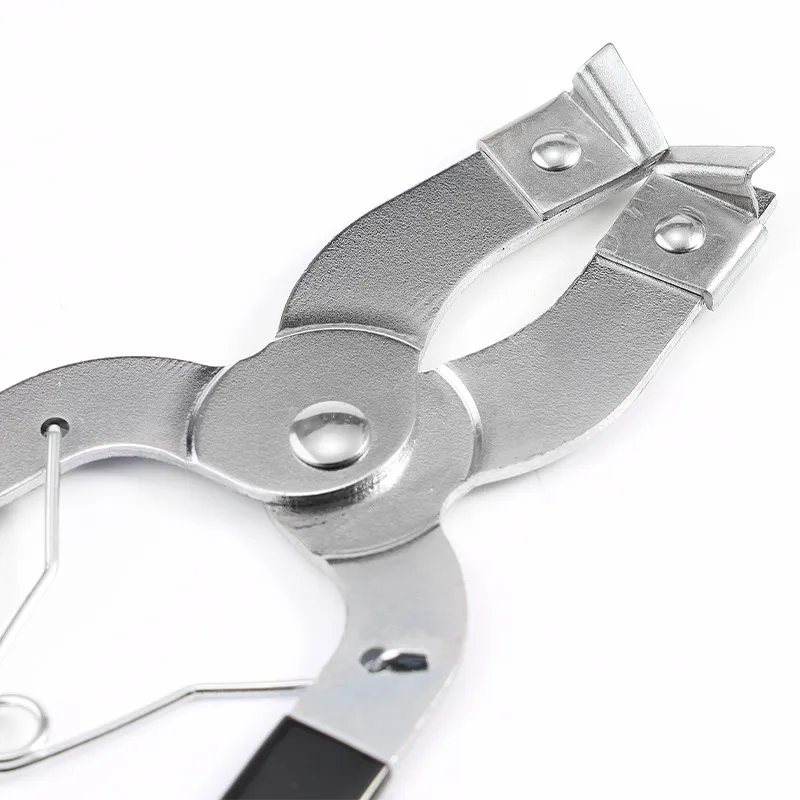 The piston clamp assembly pliers set is designed to securely hold piston rings in place during installation. These pliers help keep the rings properly compressed and aligned, making it easier to install them without causing any damage to the components. The ergonomic design of the pliers ensures a firm grip and ease of use.