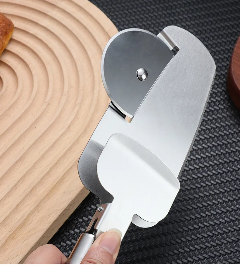 [Innovative 3-in-1 Design] Featuring a 3-in-1 design, this cutter includes a sharp wheel for slicing, a shovel for serving, and a clamp to secure the pizza, making your family gatherings more enjoyable.