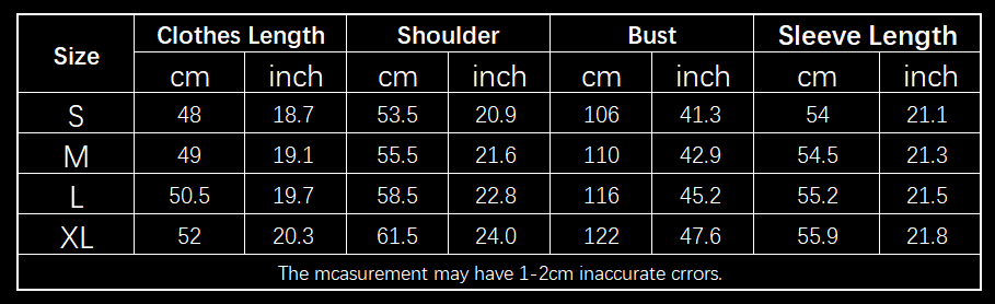 - Available in sizes S, M, L, and XL, the jacket is designed for a relaxed yet flattering fit. However, we recommend sizing up if you're in between sizes to ensure comfort and mobility(CJdropshipping).