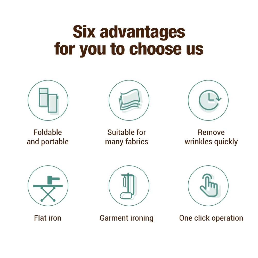 ✅ Práctico y fácil de usar: no necesita tabla de planchar, lo que lo hace ideal para retoques rápidos o planchado al vapor sobre la marcha.