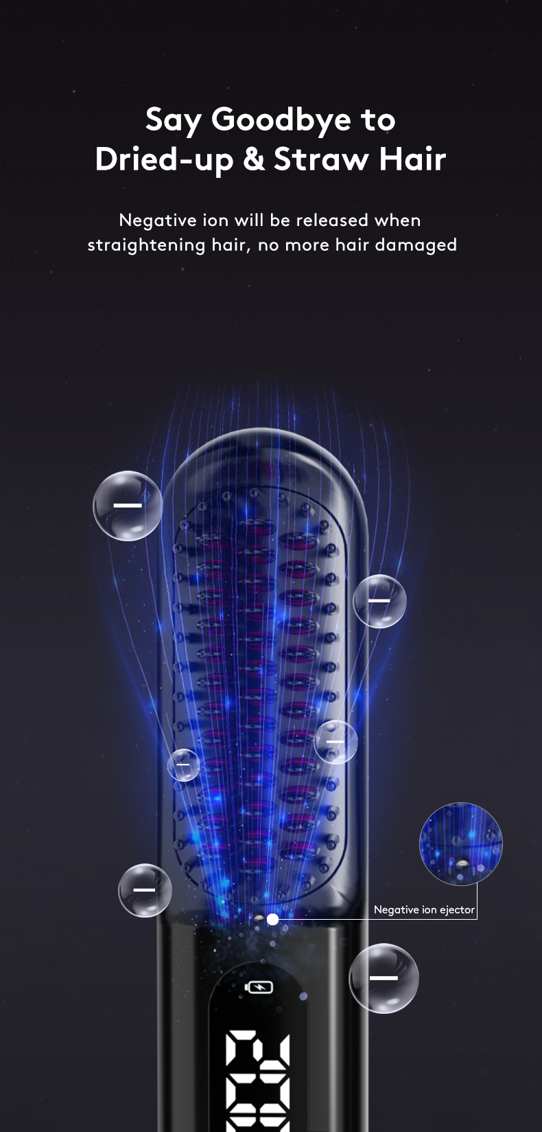 Peinado eficiente y sin esfuerzo: Nuestro cepillo alisador de cabello inalámbrico cuenta con tecnología de calentamiento avanzada que alcanza rápidamente la temperatura deseada.